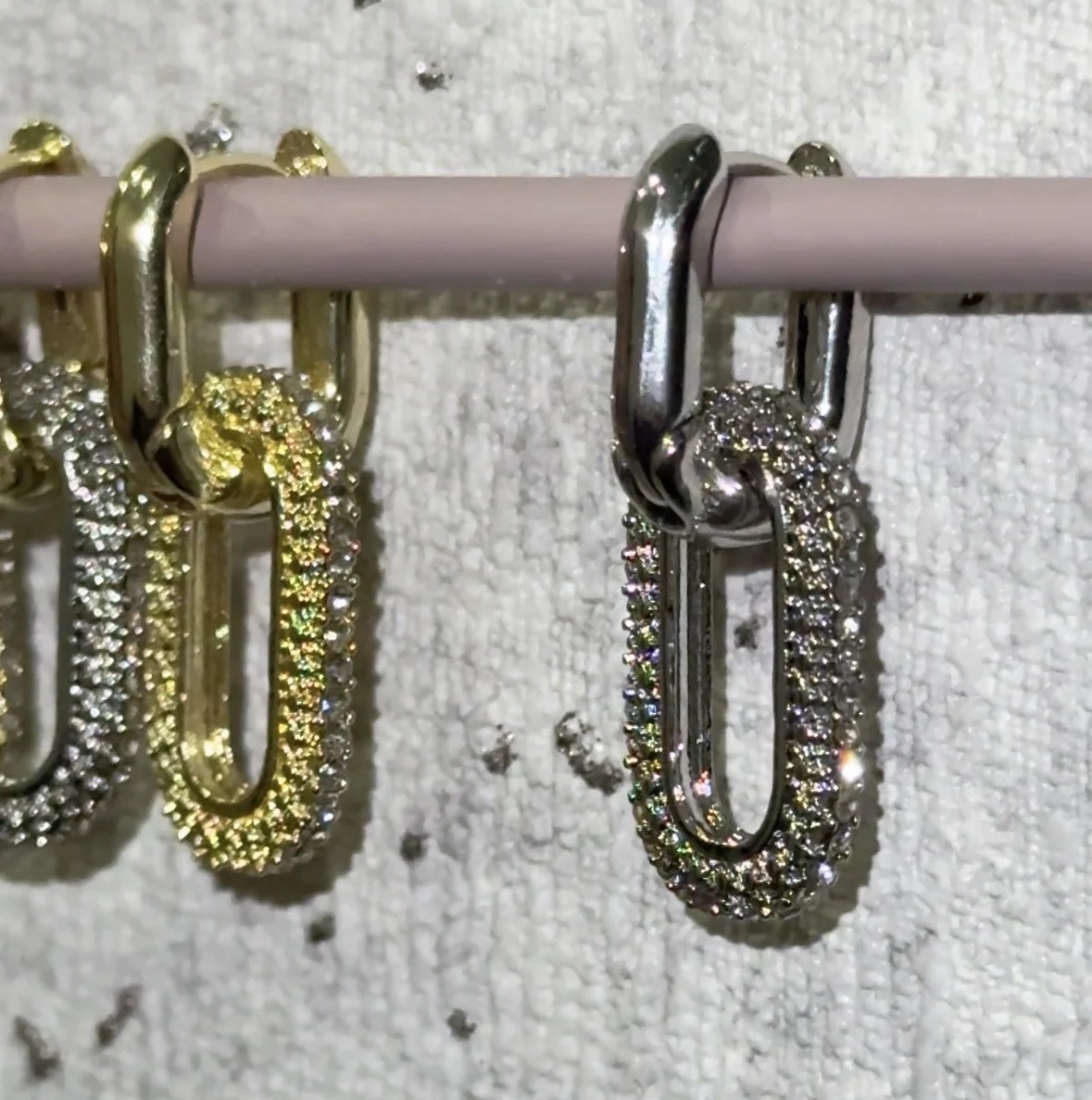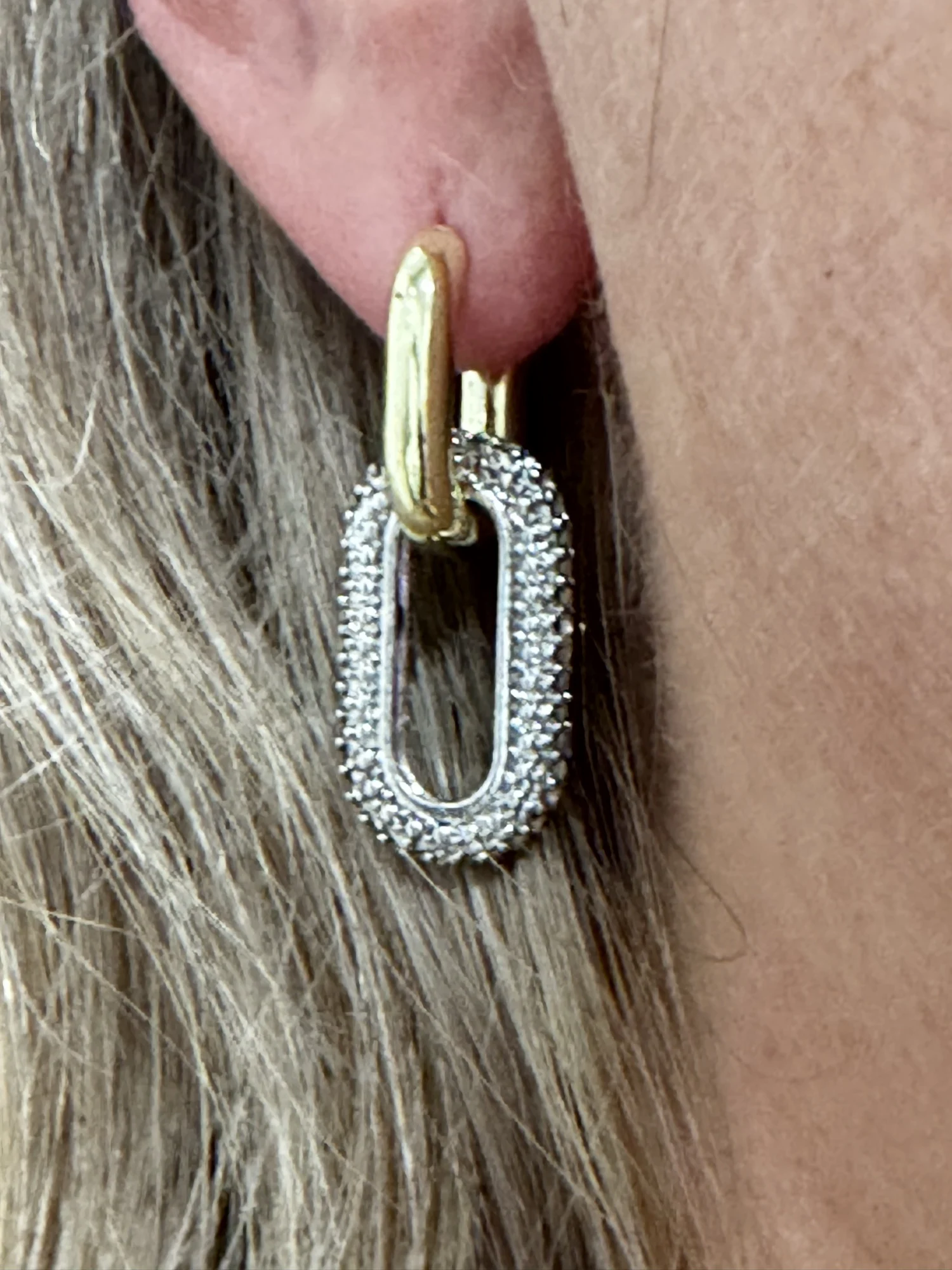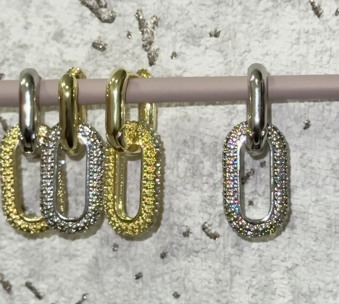 The Geometric Oval Gold Rhinestone Earrings are a stunning combination of elegance and modern design. Featuring a bold oval shape adorned with sparkling rhinestones, these earrings add a touch of luxury and sophistication to any outfit. Their lightweight build and glossy gold-tone finish make them comfortable for daily wear while maintaining a high-end, fashionable look. Perfect for parties, dinners, or casual outings, these earrings elevate any ensemble with refined charm.