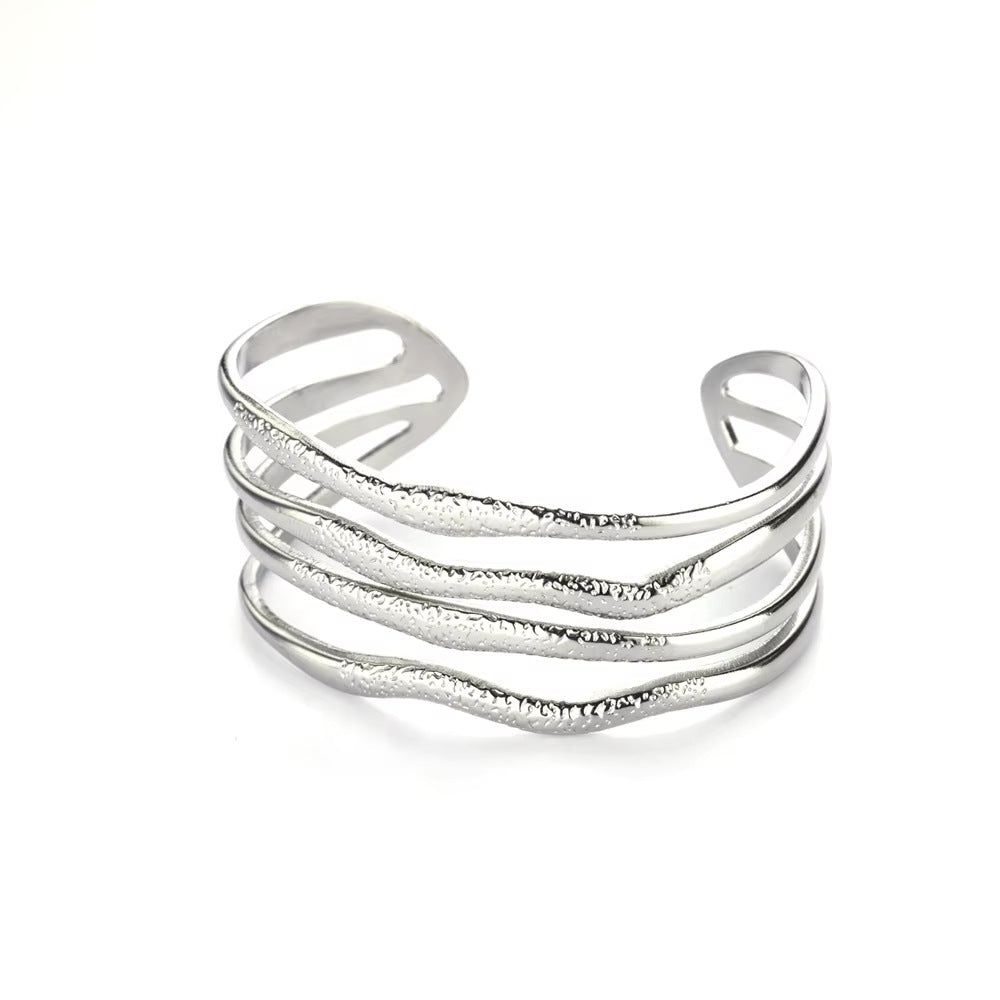 Elegant C-shaped open bangle with geometric design